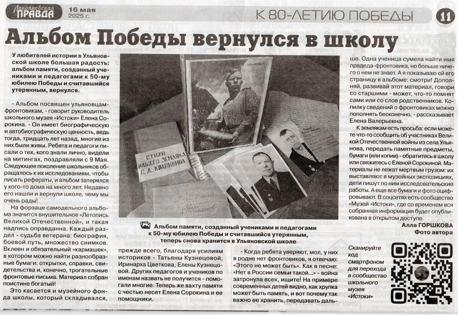 Книга поступлений вспомогательного фонда школьного краеведческого музея «Истоки»